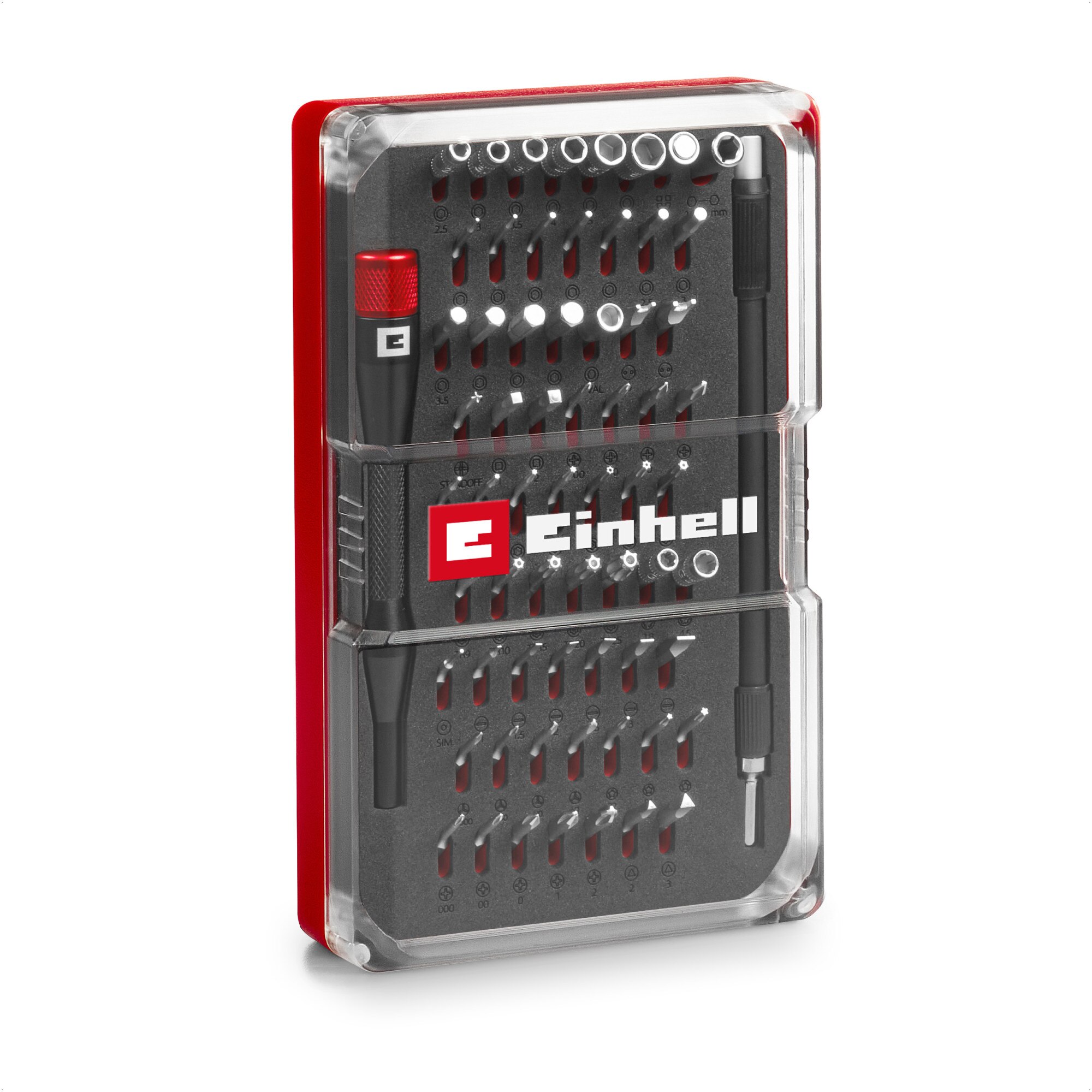 Set 66 de piese Einhell 49115030, biti de precizie, capete tubulare, surubelnita cu suport pentru biti, extensie flexibila de 150 mm, adaptor, cutie depozitare E E |