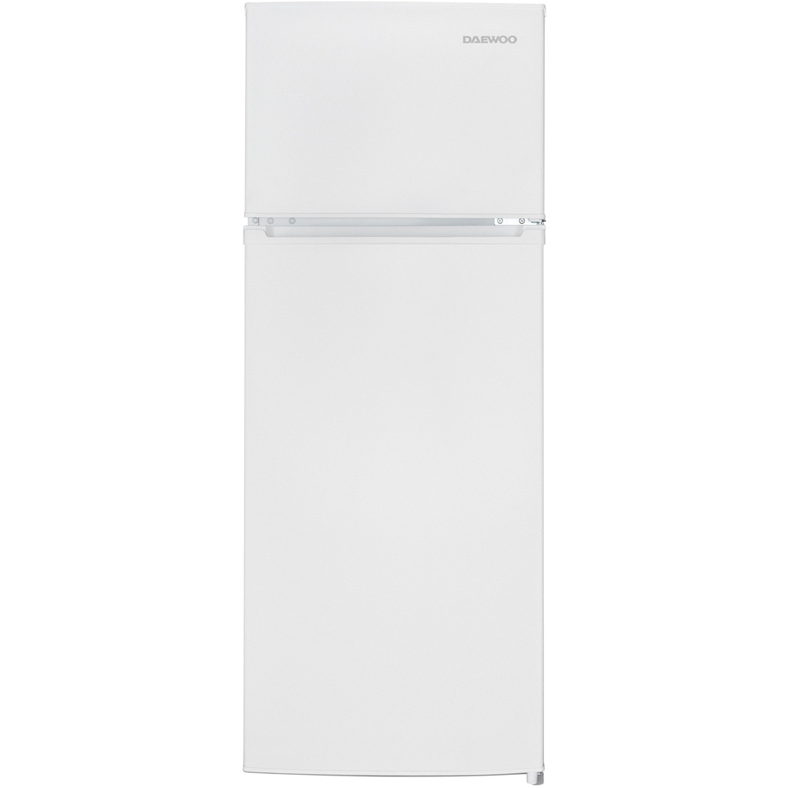 Frigider cu 2 usi Daewoo Static, congelatorul sus, volum net 204L, control mecanic, usi reversibile, raft pentru sticle, clasa E, Alb E E |