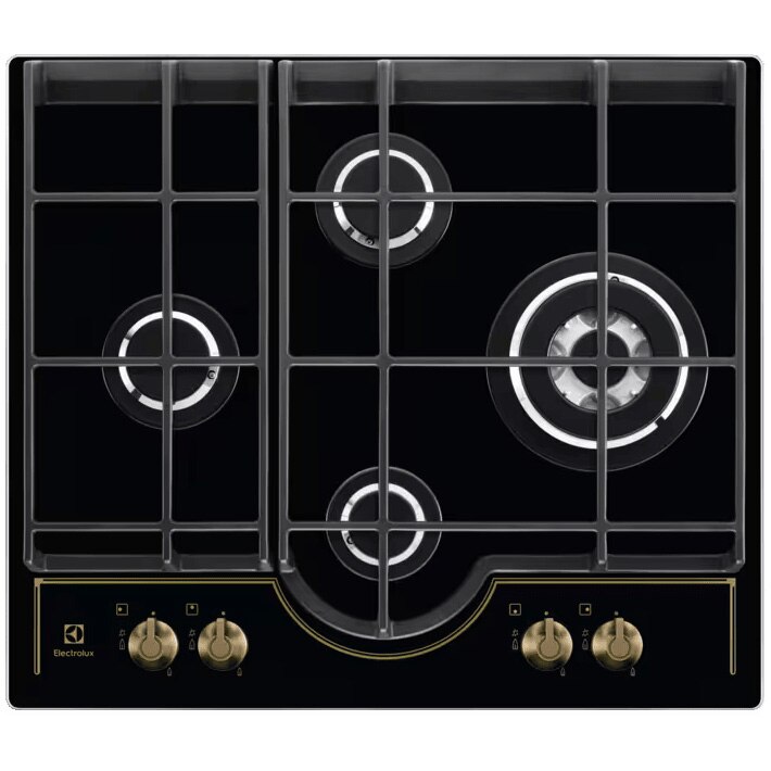 Plita incorporabila Electrolux GPE363RBK, Gaz, 4 arzatoare, Aprindere electrica integrata, Dispozitiv siguranta, Gratare fonta, 60 cm, Negru E E |