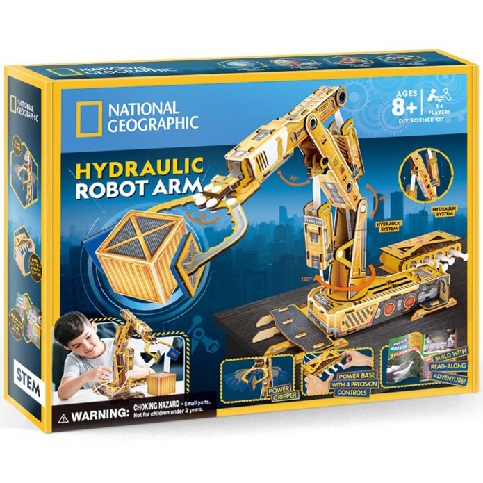 Puzzle 3D Cubic Fun - National Geographic, Brat robotic hidraulic, 185 piese CUBICFUN se asociaza cu NATIONAL GEOGRAPHIC pentru a aduce o colectie complet noua de produse S.T.E.M. cu Puzzle 3D — CUM FUNCTIONEAZA LUCRURILE. Lucruri precum ISTORIA, GEOGRAFIA, NATURA, OAMENII, STIINTA, SPATIUL — vo | 192.22 | 321 | 0 | |
