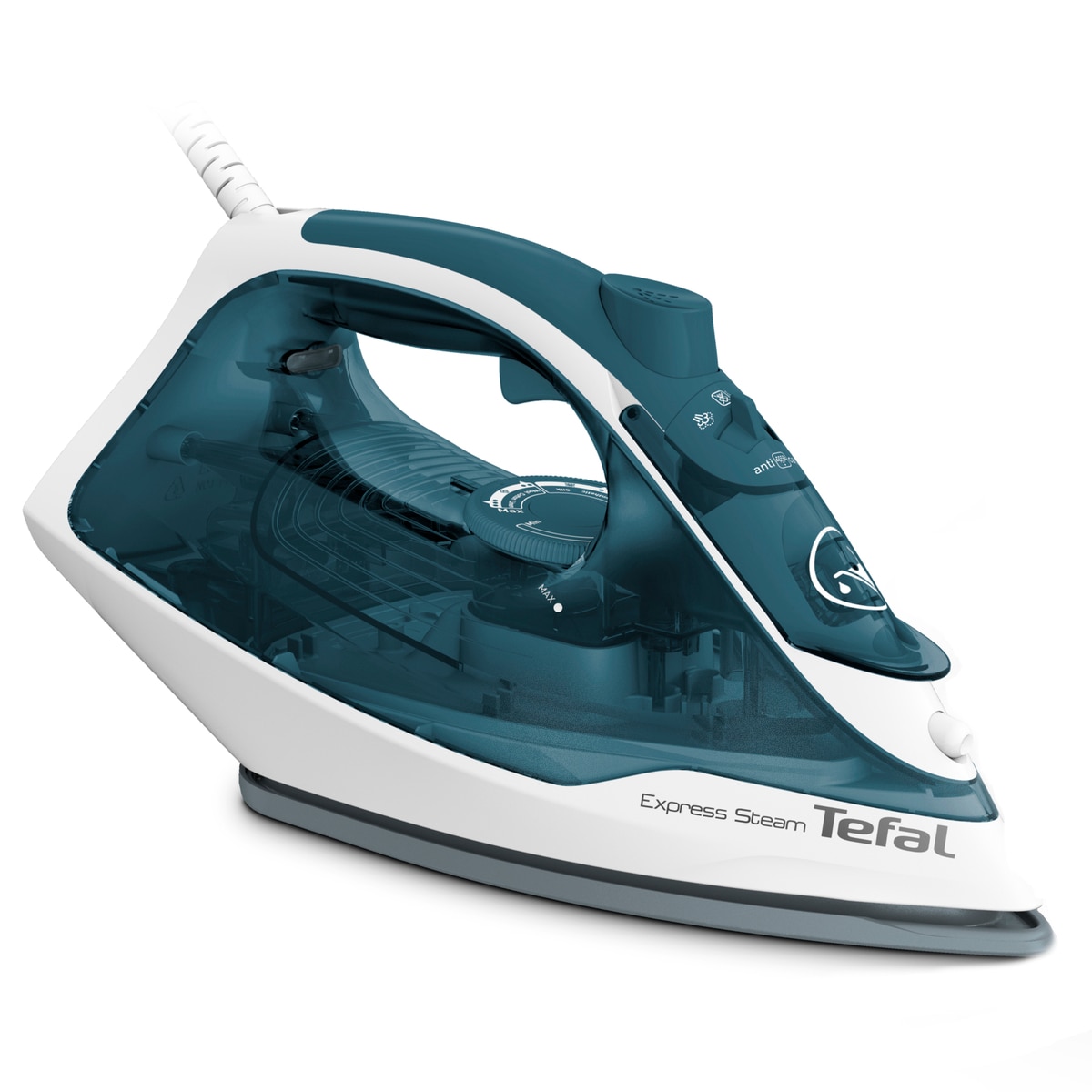 Fier de calcat cu abur, Tefal, FV2839E0 Express, 2400W, 165 g/min, 0-35 g/min, 270 ml, Ceramica, Albastru E E |