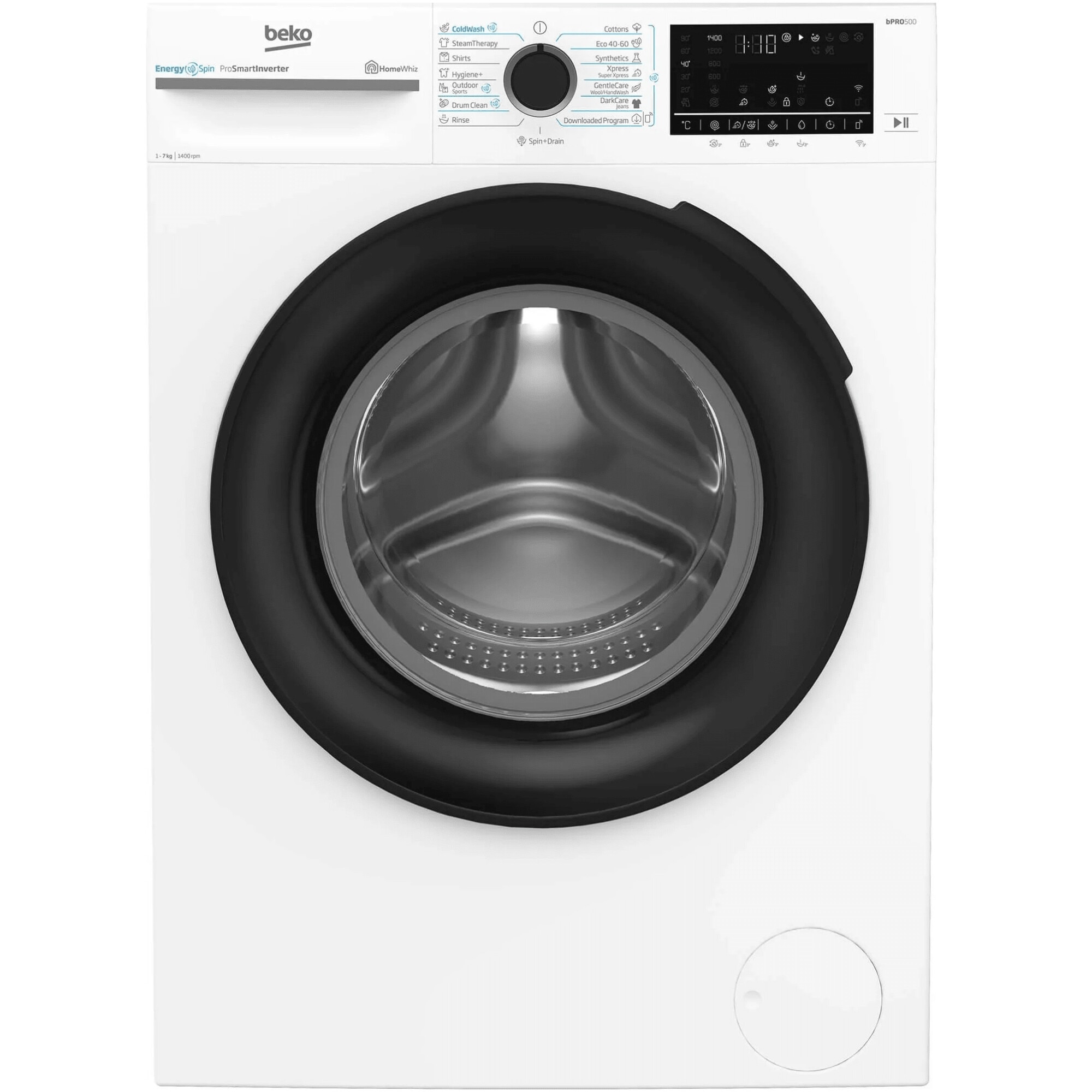 Masina de spalat rufe Slim Beko BM5WFSU67415W,7 kg, 1400 RPM, Clasa A, HomeWhiz prin WiFi, SteamCure, AddXtra, Motor ProSmart Inverter, AddXtra, Alb, usa Piano Black E E |
