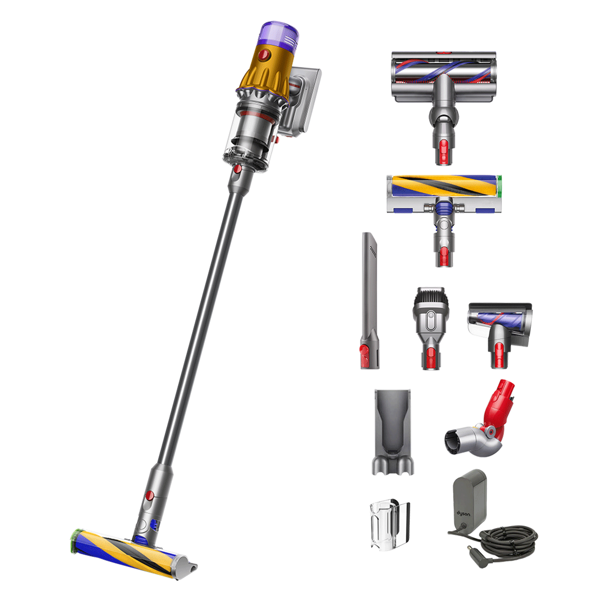 Aspirator vertical Dyson V12 Slim Detect Absolute 2023 448884-01, 545 W, 0.35 l, autonomie 60 min, iluminare, 3 moduri de curatare, negru/galben E E |