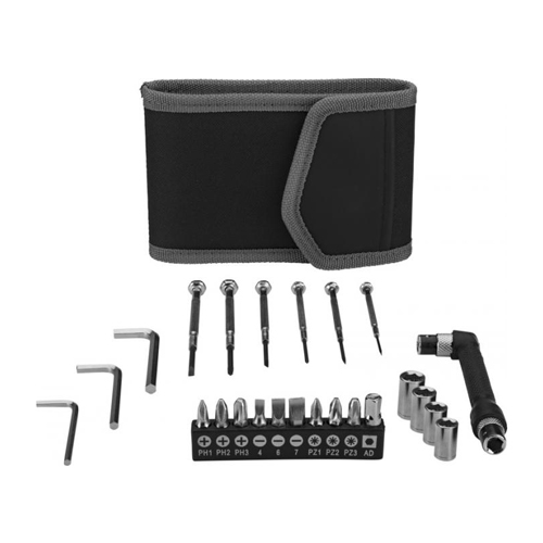 Set de scule in forma de anvelopa de 25 de piese. Setul de unelte de 25 de piese include un mini-masurator cu banda, surub cu cap Phillips, surubcu cap plat, 9 biti cu adaptor (4 capete Phillips, 2 capete plate si 3 capete hexagonal), 3 chei hexagonale, 5 prize (5-9 mm) ), cleste, maner surub si ada | 100.60 | 168 | 0 | |
