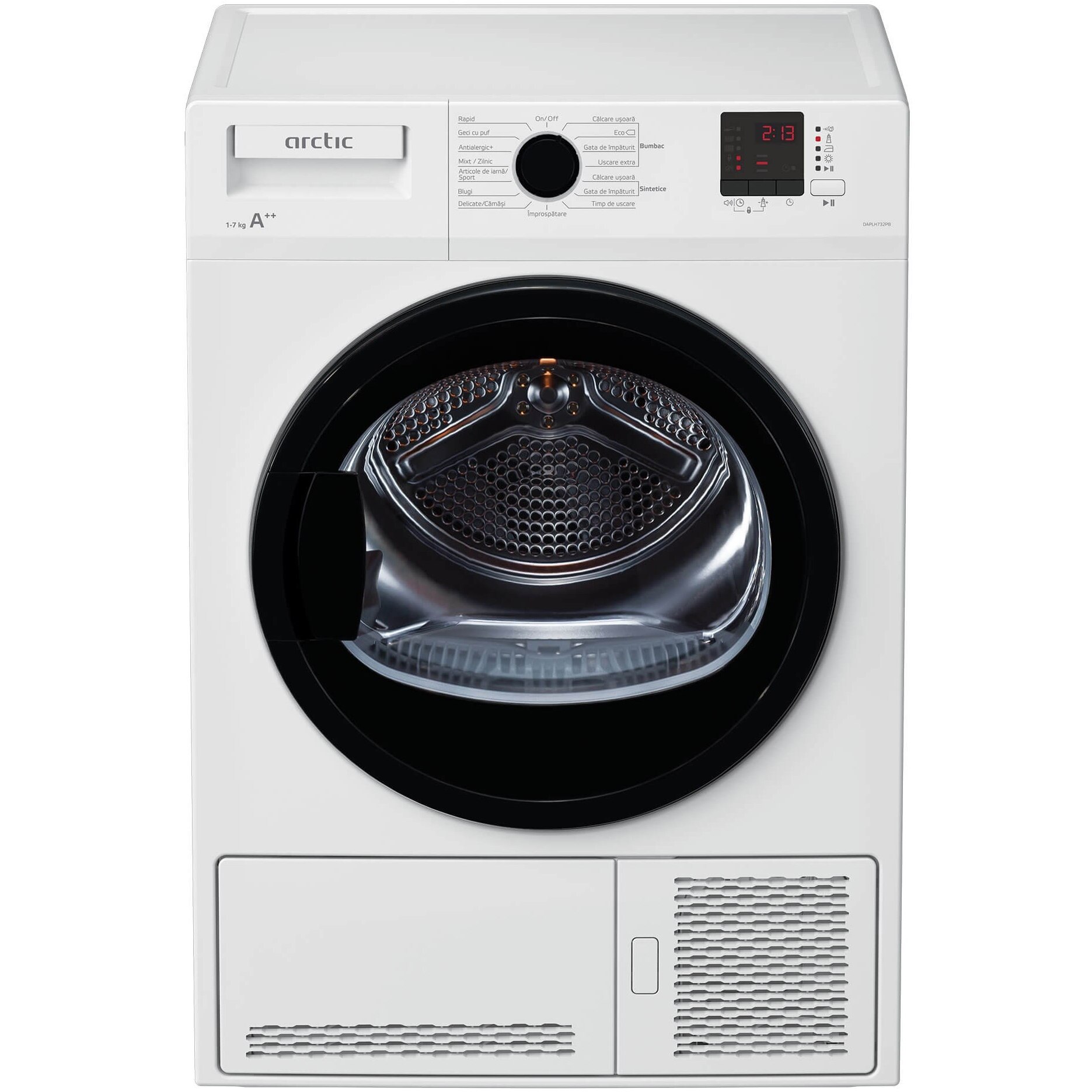Uscator de rufe Arctic DAPLH732PB, Pompa de caldura, 7 kg, 15 programe, Clasa A++, Aqua Surf, Alb E E |