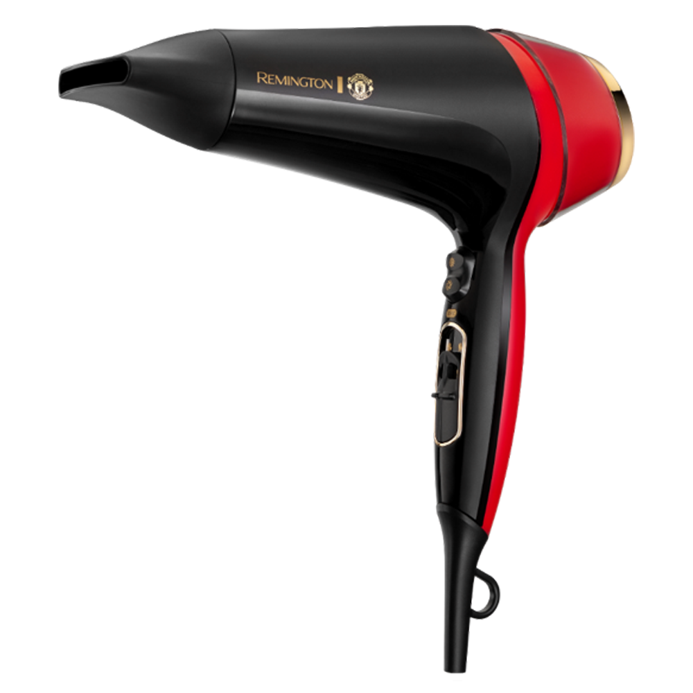 Uscator de par Remington D5755 Thermacare Manchester United, 2400 W, 2 viteze, 3 trepte de temperatura, Indicator LED Ionic, Turbo Boost, Rosu/ Negru E E |