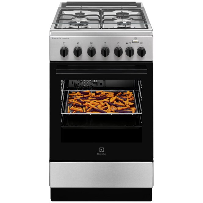 Aragaz Electrolux LKK560000X, Mixt, 4 arzatoare gaz, Cuptor electric multifunctional, SteamBake, AirFry, Aprindere integrata, Grill electric, Clasa A, 50 cm, Inox E E |