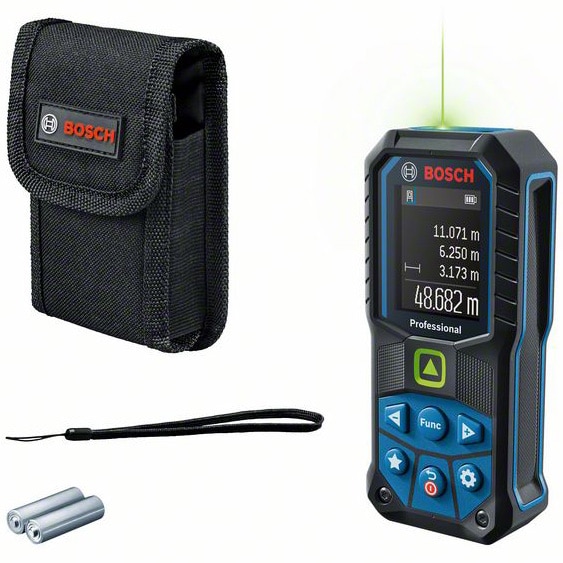 Telemetru laser Bosch Professional GLM 50-25 G, 50 m domeniu masurare, 515 nm dioda laser, ± 1.5 mm precizie, IP65, 2 baterii 1.5 V LR6 (AA), geanta protectie, curea transport E E |