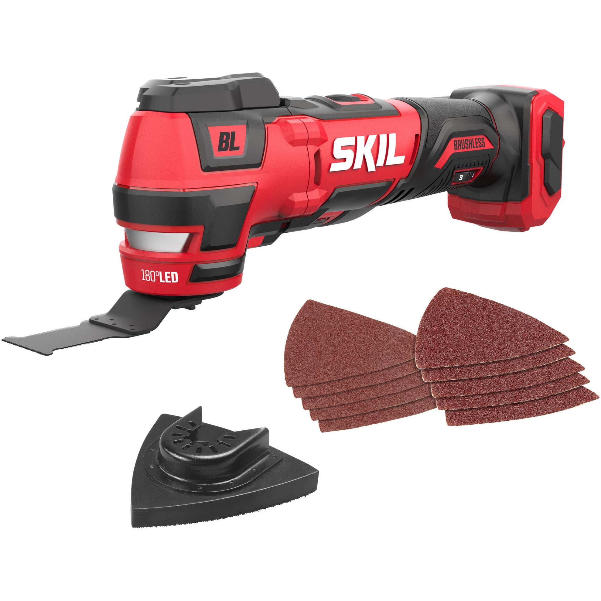 Unealta multifunctionala pe acumulator Skil Red MF1E2650CA, 12 V, motor Brushless, compacta, cu accesorii si 10 foi de slefuire, fara acumulator/incarcator E E |