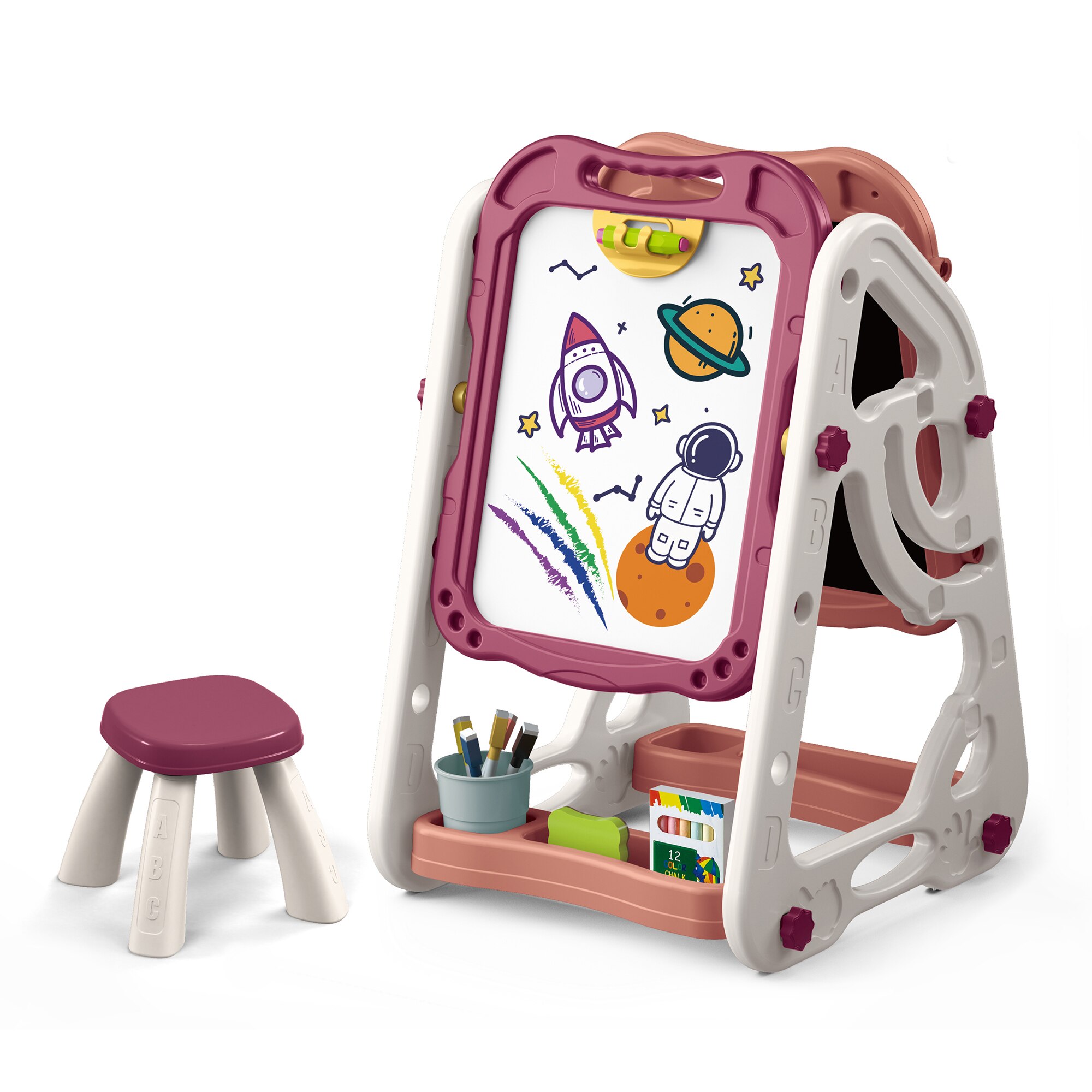 Tabla multifunctionala Mappy Double, transformabila, cu doua fete si scaun, roz E E |