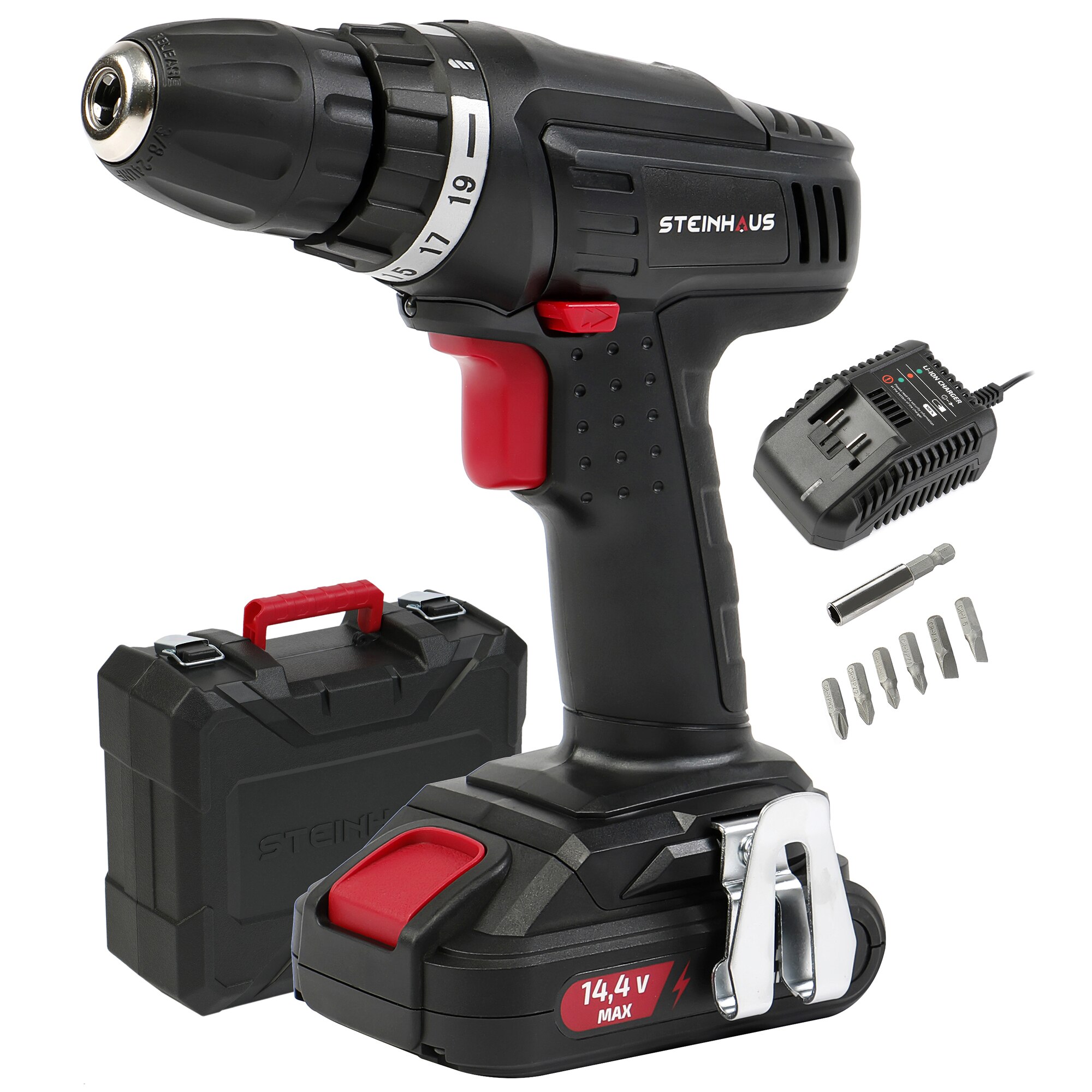 Masina de gaurit si insurubat (bormasina) cu acumulator 144V 13Ah LiIon Steinhaus Start, PROCD144B, 20Nm, 550 RPM, mandrina rapida 10mm, 7 accesorii, cutie plastic E E |