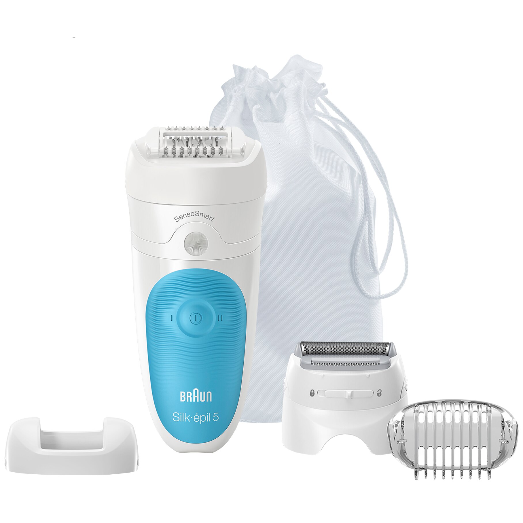 Epilator Braun Silkepil 5 SensoSmart SE5890, 28 pensete, 2 viteze, Retea, Alb Albastru E E |
