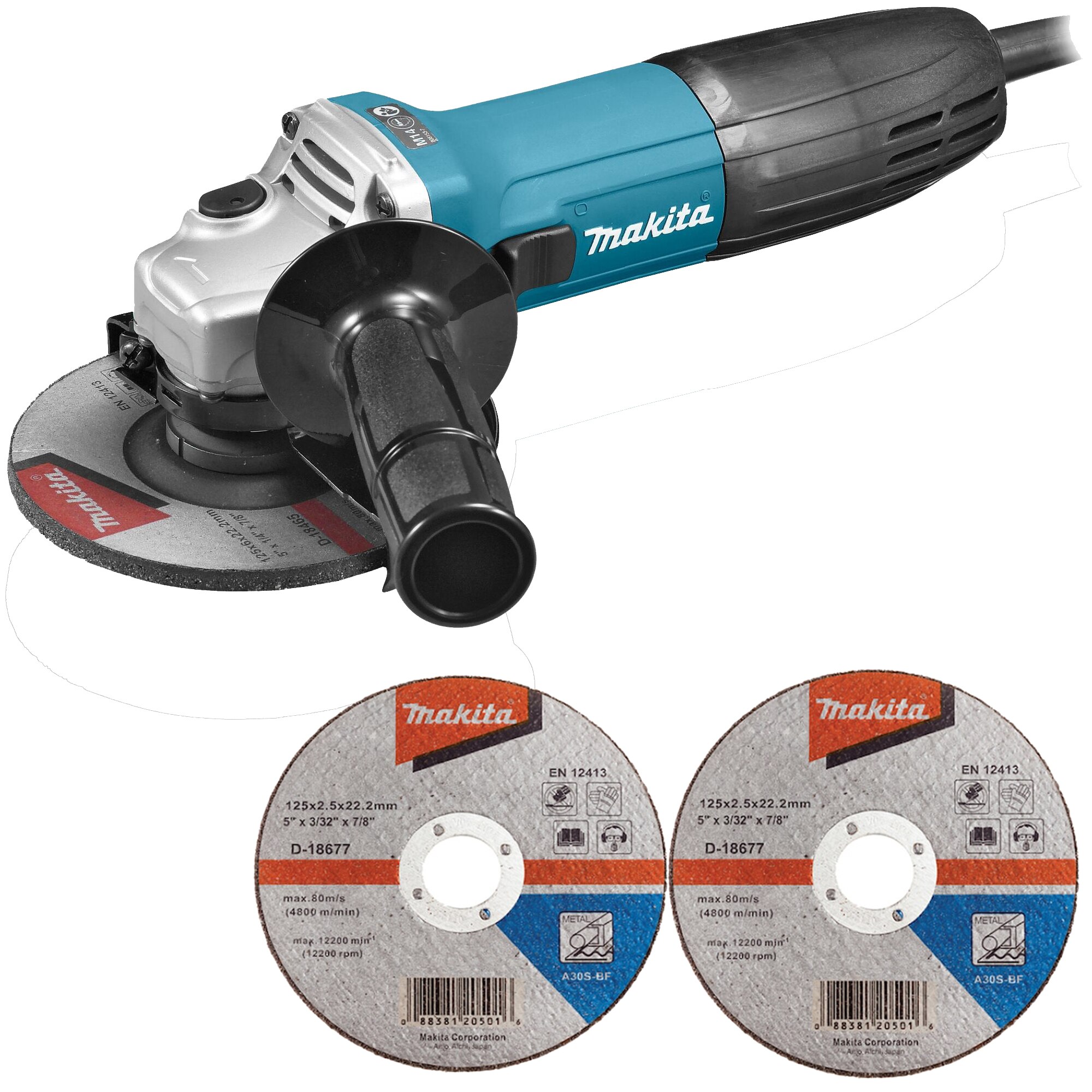 Polizor unghiular (flex) Makita GA5030R, 720 W, 11000 RPM, 125 mm diametru disc+ 2 discuri de taiere metal E E |