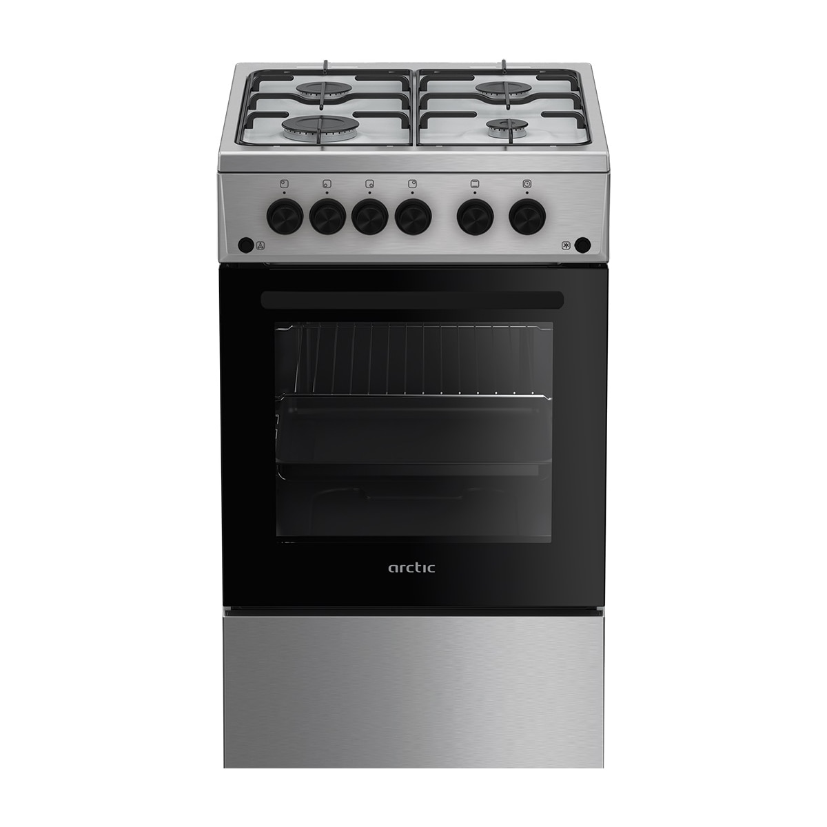 Aragaz Arctic AGG5611DTTLX, 4 arzatoare, Gaz, Aprindere electrica plita/cuptor, Safety Plus, Grill, Rotisor, Timer, Arzatoare cu eficienta ridicata, 50 cm, Inox E E |