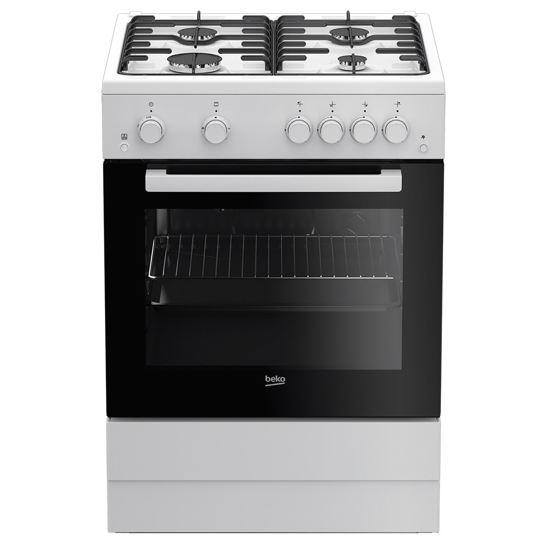 Aragaz Beko FSGT62110GWO, 4 arzatoare, Gaz, Aprindere electrica plita/cuptor, Grill, Rotisor, 60 cm, Alb E E |