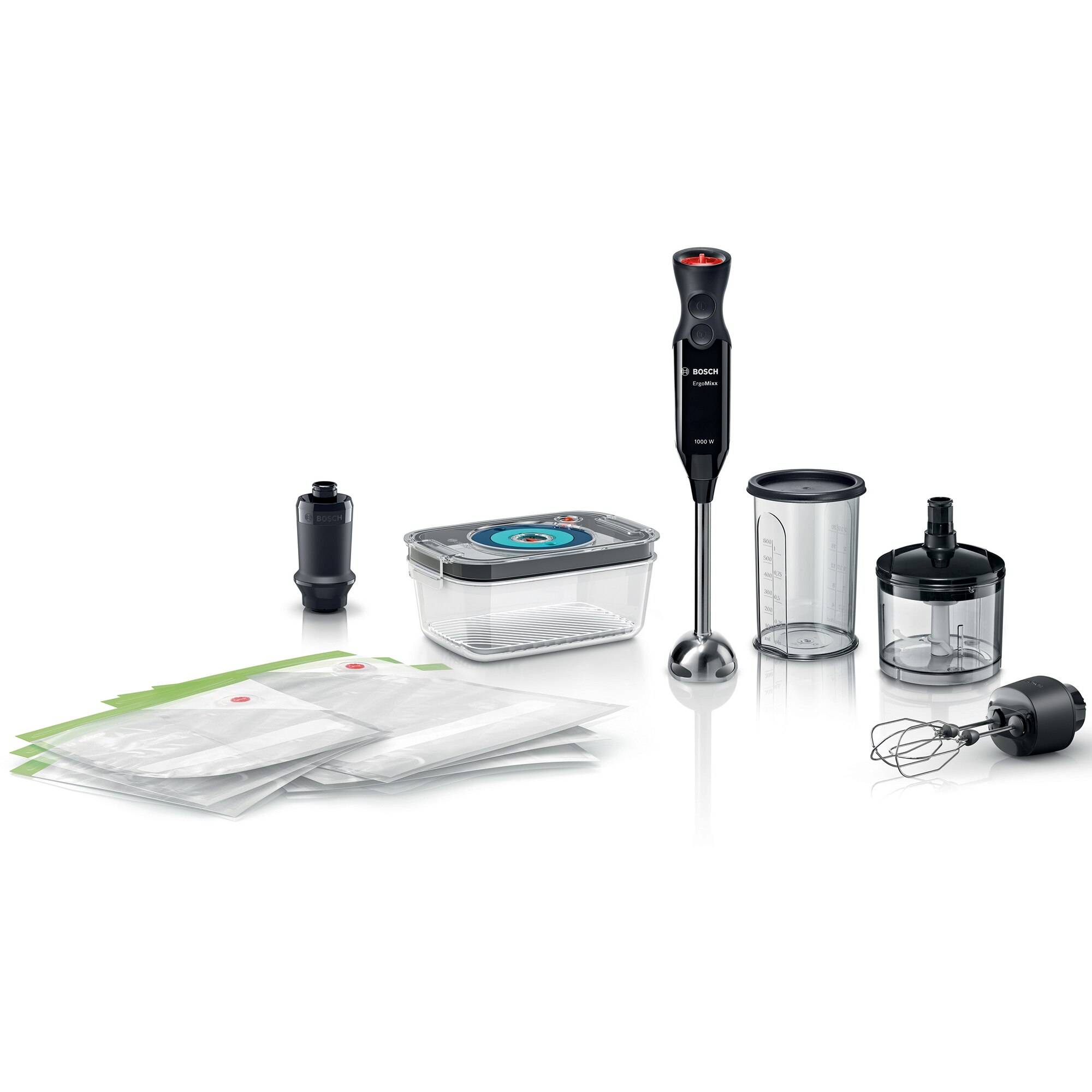 Mixer vertical Bosch ErgoMixx MS6CB61V7, 1000 W, accesoriu cu 2 teluri, chopper, 12 trepte de putere și funcție Turbo, accesorii pentru vidare incluse, Negru Putere mare pentru pasare eficienta, functie de vidare si accesorii cu sistem de vidare. Te poti bucura de alimente proaspete in fiecare zi� | 646.71 | 1080 | 0 | |
