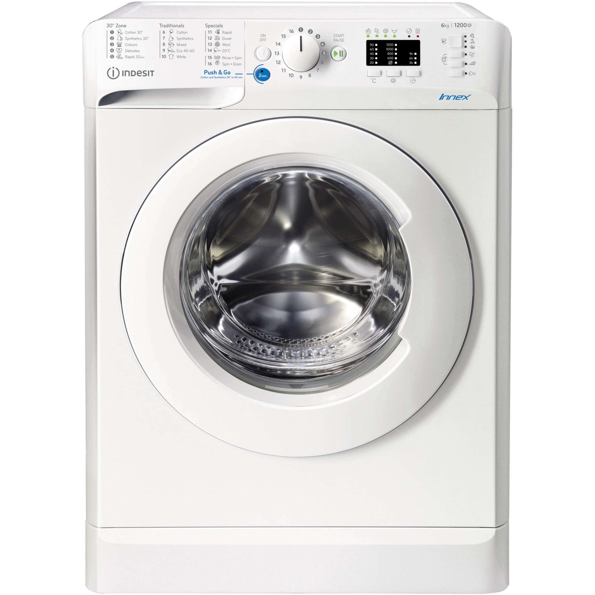 Masina de spalat rufe slim Indesit BWSA61251WEEN, 6 kg, 1200 rpm, Clasa F, Push&Go, Motor Universal, Display LED, Alb E E |