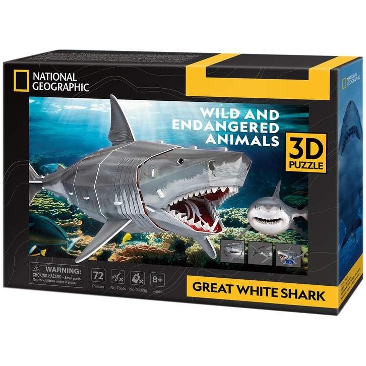 Puzzle 3D Cubic Fun - National Geographic, Marele rechin alb, 72 piese Facand echipa cu National Geographic, CubicFun aduce colectia de modele de animale salbatice si in pericol. Esti iubitor de animale? Hai sa ne alaturam pentru a avea o calatorie prin regatul animal. Prin kiturile de puzzle-uri 3D | 92.81 | 155 | 1 | |