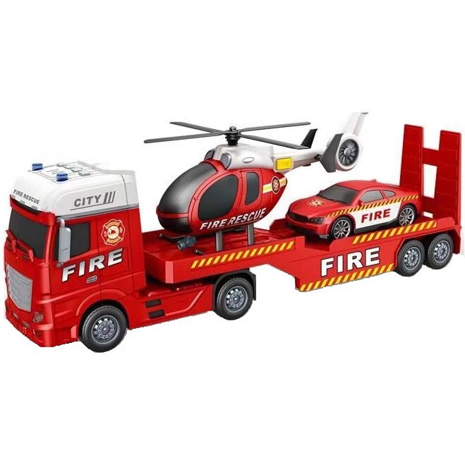 Set de joaca Mappy Fire Rescue - Camionul cu Masinuta si Elicopter, cu lumini si sunete, scara 1:12 E E |