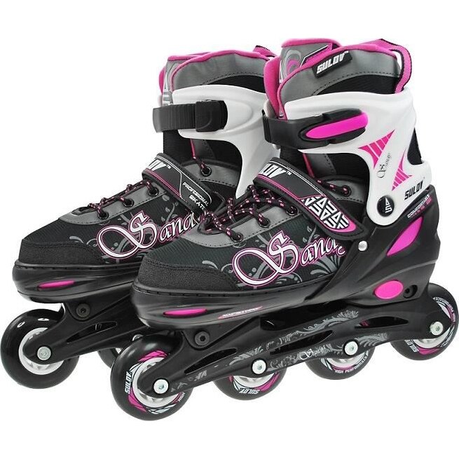 Role 2 IN 1 Solov Sandy, M 35-38 Caracteristici:Role reglabile;Deplasare pe suprafete uscate;Materiale: PE durabil, nylon, PVC rezistent la temperaturi scazute;Catarama dubla cu blocare, asigurare cu banda velcro;Lamele patinelor sunt confectionate din inox;Dimensiuni roti: 70 x 24 mm. | 291.62 | 487 | 0 | |