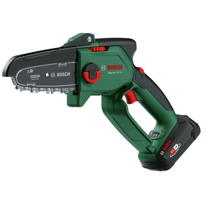 Mini fierastrau electric/mini drujba cu lant pe acumulator Bosch EasyChain 18V-15-7, 18 V, lungime lama 15 cm, viteza lant 6.95 m/s, lama Oregon, motor fara perii, include: incarcator + acumulator 18 V 2.5 Ah E E |
