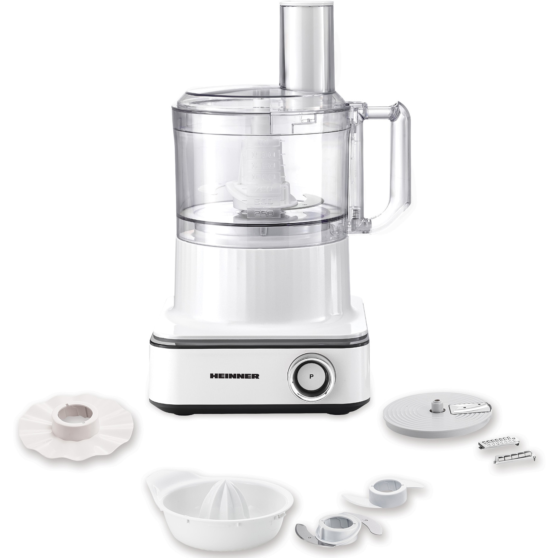 Robot de bucatarie Heinner FineGourmet HFP-K1000WP, 1000W, 6 viteze+pulse, bol procesare: 2.3L, lame inox, disc framantare, 3 lame feliere, disc emulsifiere, cana plastic 1.5l, storcator citrice, alb Putere 1000WCu robotul FineGourmet© poti mixa, toca ori emulsiona o gama variata de ingrediente, ca | 383.23 | 640 | 0 | |