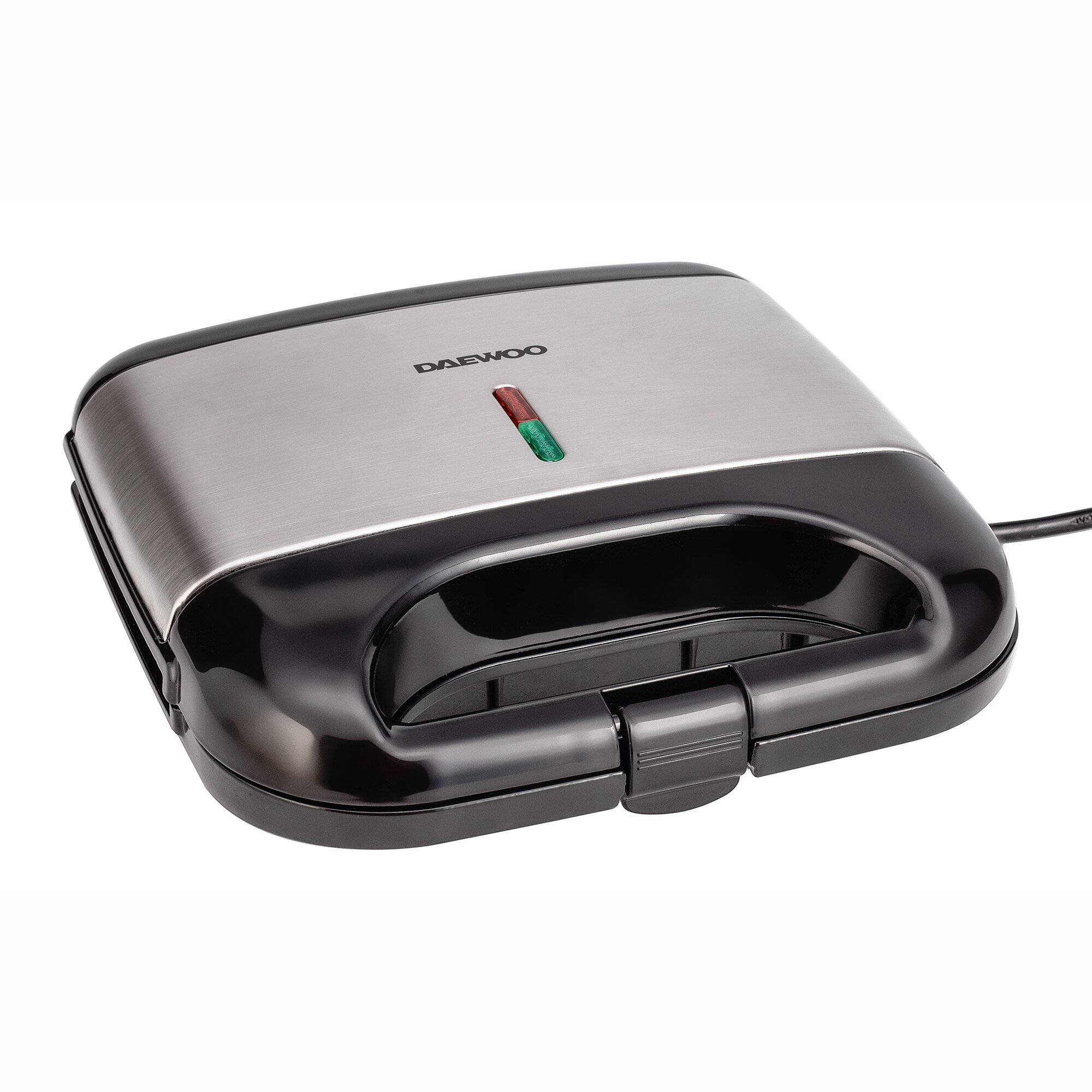 Sandwich maker Daewoo DSM20X, 800 W, placi neaderente, indicator luminos, maner Cool Touch, clapeta de blocare, Inox/Negru E E |