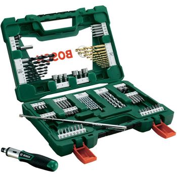 Set 91 accesorii Bosch V-Line, surubelnita, bara magnetica, biti, zencuitor, suport magnetic, chei tubulare, burghie E E |