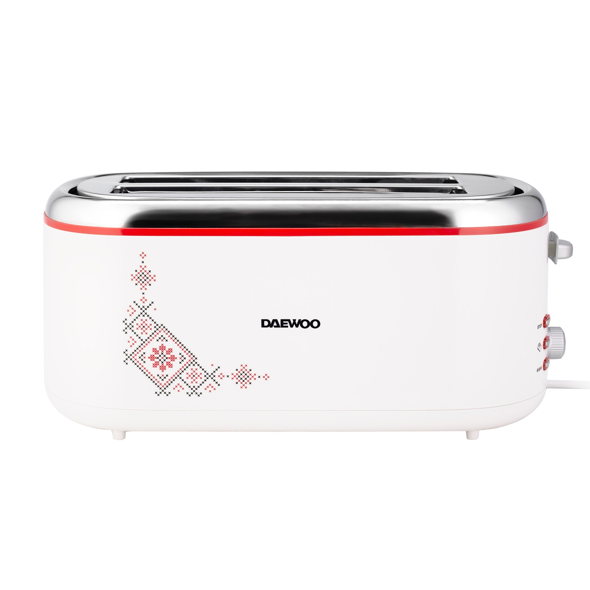 Prajitor de paine Daewoo DBT90TR, 1500 W, design traditional, control electronic rumenire, functie dezghetare, functie reincalzire, functie anulare, indicator luminos, tavita pentru firimituri, spatiu depozitare cablu, Alb E E |