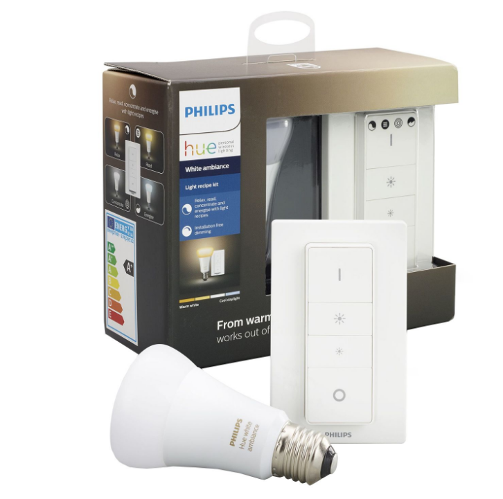 Pachet bec inteligent LED Philips Hue, E27, 9.5W, 800 lm, lumina calda + Intrerupator PHONETASTIC GSM PHONETASTIC GSM |
