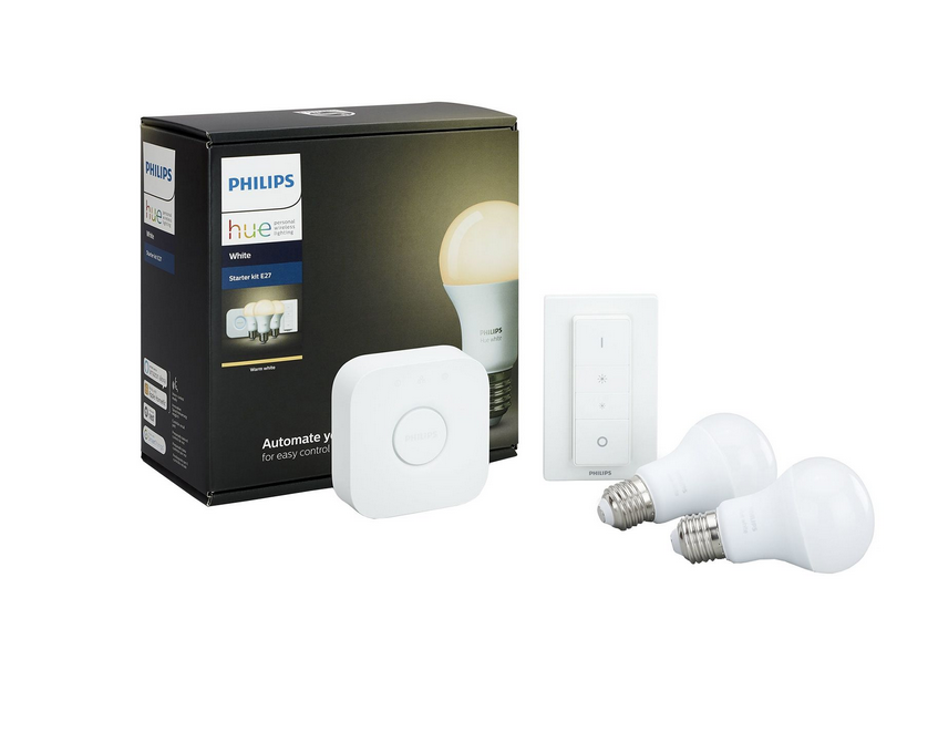 Pachet 3 becuri inteligente LED Philips Hue Starter, E27, 9W (60W), 806 lm, lumina alba + Bridge si Variator PHONETASTIC GSM PHONETASTIC GSM |