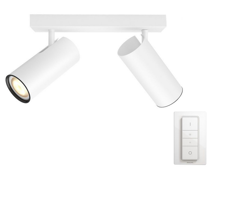 Spot luminos Philips HUE Buratto, LED, GU10, 2 x 5.5W (25W), 250 lumeni, A+, lumina alba rece, Alb + Variator wireless PHONETASTIC GSM PHONETASTIC GSM |