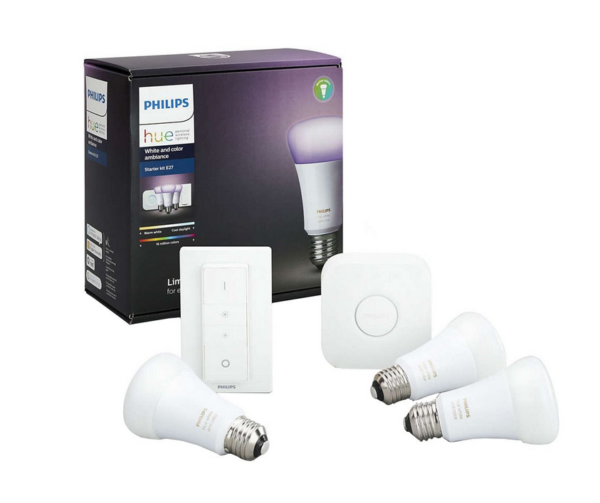 Pachet 3 becuri inteligente LED RGB Philips Hue E27, 10W (60W), 806 lm, lumina alba/colorata + Bridge si Variator P P |