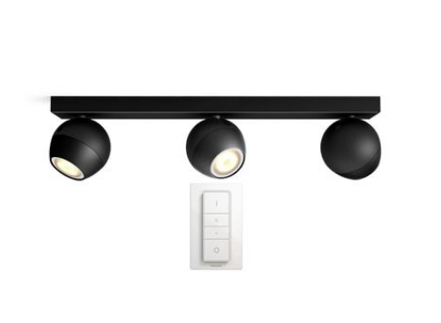Spot luminos Philips HUE Buckram, LED, GU10, 3 x 5.5W (25W), 250 lumeni, A+, lumina alba rece, Negru + Variator wireless PHONETASTIC GSM PHONETASTIC GSM |