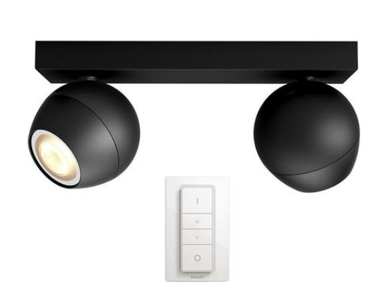 Spot luminos Philips HUE Buckram, LED, GU10, 2 x 5.5W (25W), 250 lumeni, A+, lumina alba rece, Negru + Variator wireless PHONETASTIC GSM PHONETASTIC GSM |