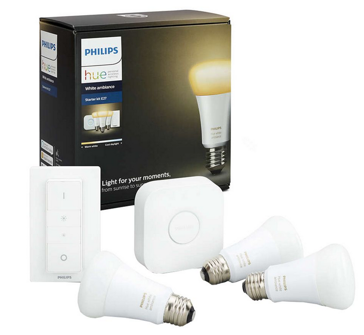 Pachet 3 becuri inteligente LED Philips Hue Ambianta alba, E27, 9.5W, 806 lm + Bridge si Variator | 852.69 | 1424 | 0 | |