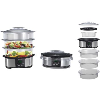 Aparat de gatit cu aburi Heinner Master Collection HSA-1000XMC, 1000 W, 12 l, Argintiu/Negru Acest aparat de gatit cu aburi face parte din noua gama de produse Heinner Master Collection promovate de chef Catalin Scarlate | 225.75 | 377 | 0 | |