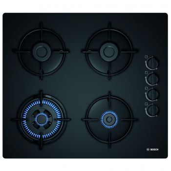 Plita incorporabila Bosch POH6B6B10, 4 Arzatoare, Gaz, Aprindere electrica, Arzator Wok, 60 cm, Negru E E |