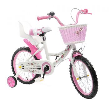 Bicicleta copii cu pedale Mappy, roz, 14", cu roti ajutatoare, cosulet si scaun pentru papusa Emag Emag |