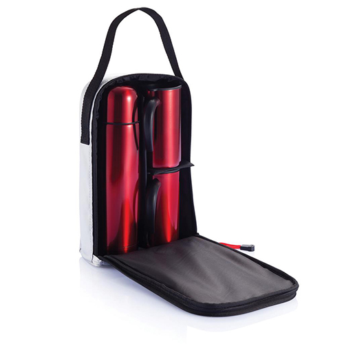 Balon de 500 ml cu perete dublu și vid din oțel inoxidabil cu închidere prin împingere și două cani de cafea din oțel inoxidabil cu o singură pereche de 300 ml. Ambalat într-o geantă de transport. | 303.59 | 507 | 0 | |