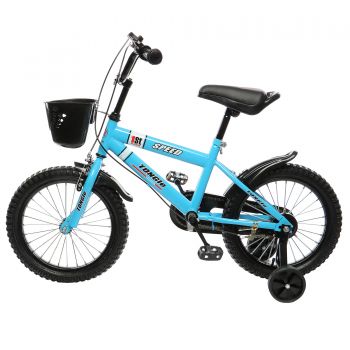 Bicicleta copii cu pedale Mappy, bleu, 16", cu roti ajutatoare, cosulet si bidon E E |