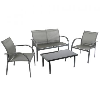 Set mobilier gradina/terasa, Kring Odessa, canapea 2 locuri, masa si 2 scaune, otel/sticla, gri E E |