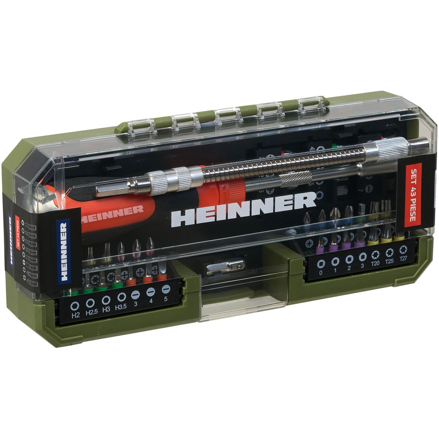 Set 43 accesorii Heinner PCSS018, surubelnita cu clichet, biti, extensie flexibila, adaptor biti E E |