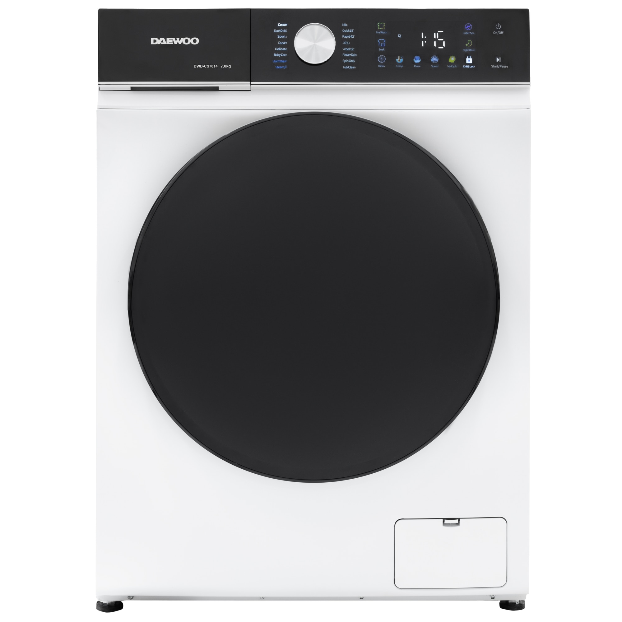Masina de spalat rufe Daewoo DWD-CS7014, 7 kg, motor inverter, 1400 rpm, clasa A-10%, 16 programe, butoane touch, panou de control negru cu pictograme colorate, usa dubla neagra (PC Cover), culoare Alb Masina de spalat rufe DWD-CS7014, clasa energetica A -10%, ofera o capacitate de 7 kg si o viteza | 1714.37 | 2863 | 0 | |