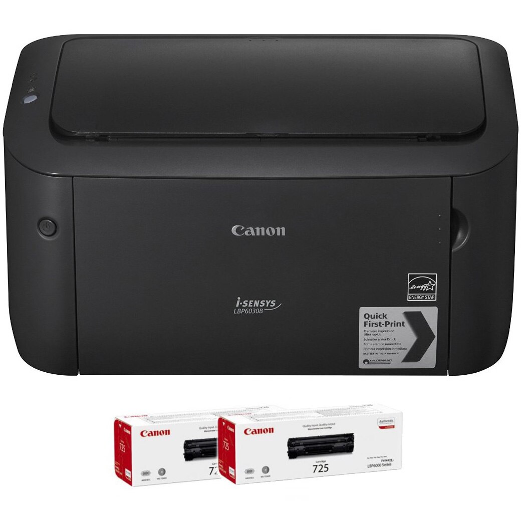 Pachet format din Imprimanta laser A4 monocrom Canon LBP6030B + 2 tonere CRG-725 E E |