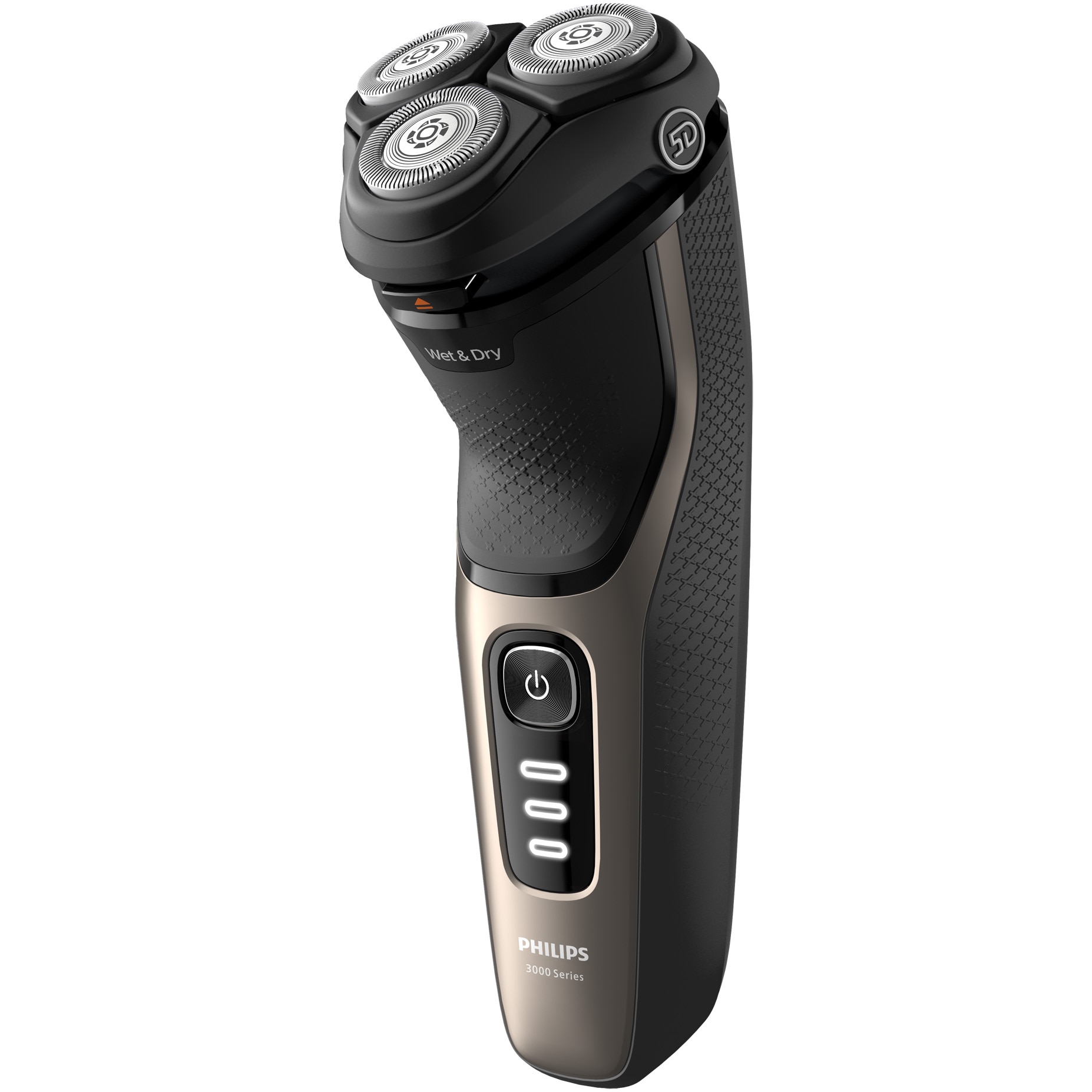 Aparat de ras PHILIPS Shaver Seria 3000 S3242/12, barbierit umed şi uscat, fara fir, capete 5D pivotante si flexibile, lame autoascutire, 60 min, capac de protectie, Auriu cenusiu E E |