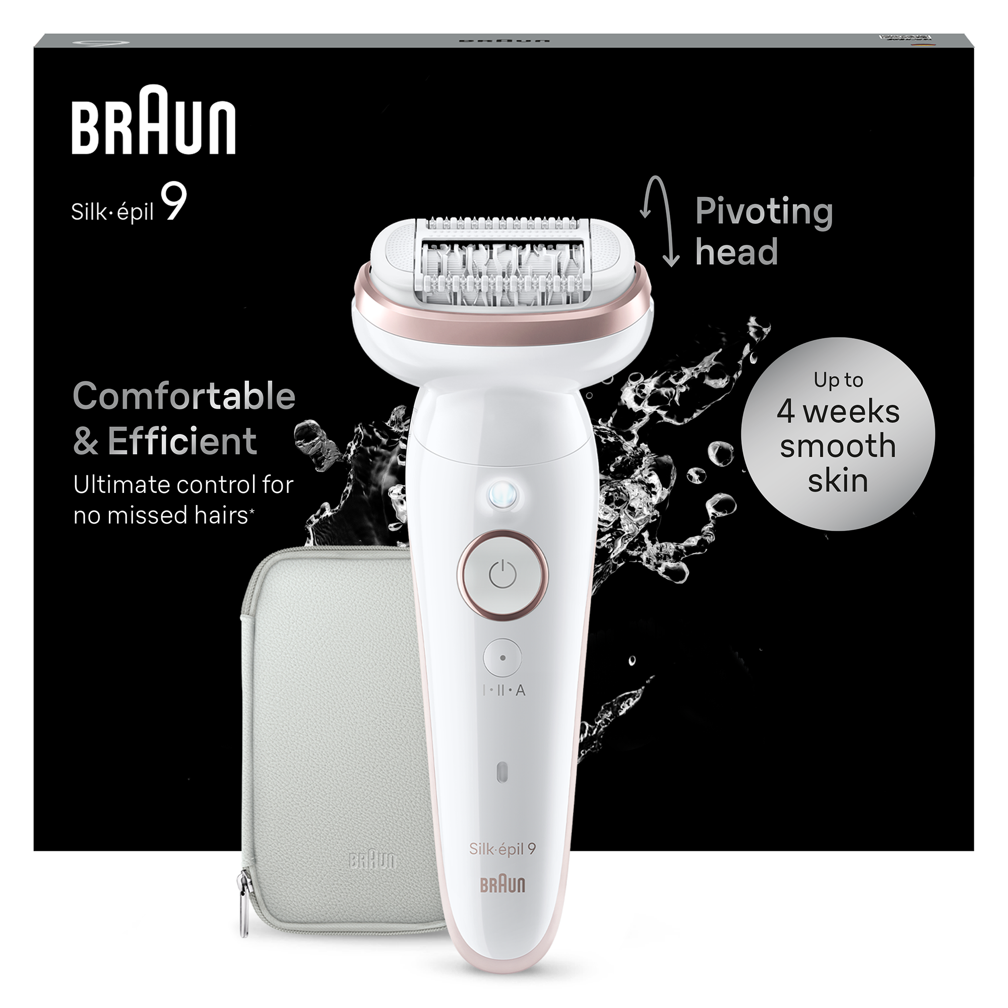 Epilator Braun Silk-épil 9 9-000 Wet & Dry, MicroGrip, Smart Light, 2 viteze, 40 pensete, Geanta de voiaj, Alb/Roz Pana la 1 luna de piele catifelataEpilatorul Braun Silk-épil 9000 asigura pana la 1 luna de piele catifelata, in orice moment si in mod eficient. Rapid si eficient: capul lat pivotant | 747.31 | 1248 | 1 | |