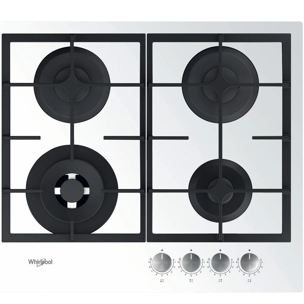 Plita incorporabila Whirlpool GOFL 629/WH, Gaz, 4 arzatoare, 1 arzator cu flacara dubla, MultiStep, Gratare fonta, 60 cm, Alb E E |